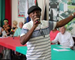O músico Carlos Brollo realizou apresentações musicais para animar os presentes aos comemorativos do extinto Esperança. As canções animaram os presentes que participaram de um coquetel oferecido pela diretoria do Nova Friburgo F.C.